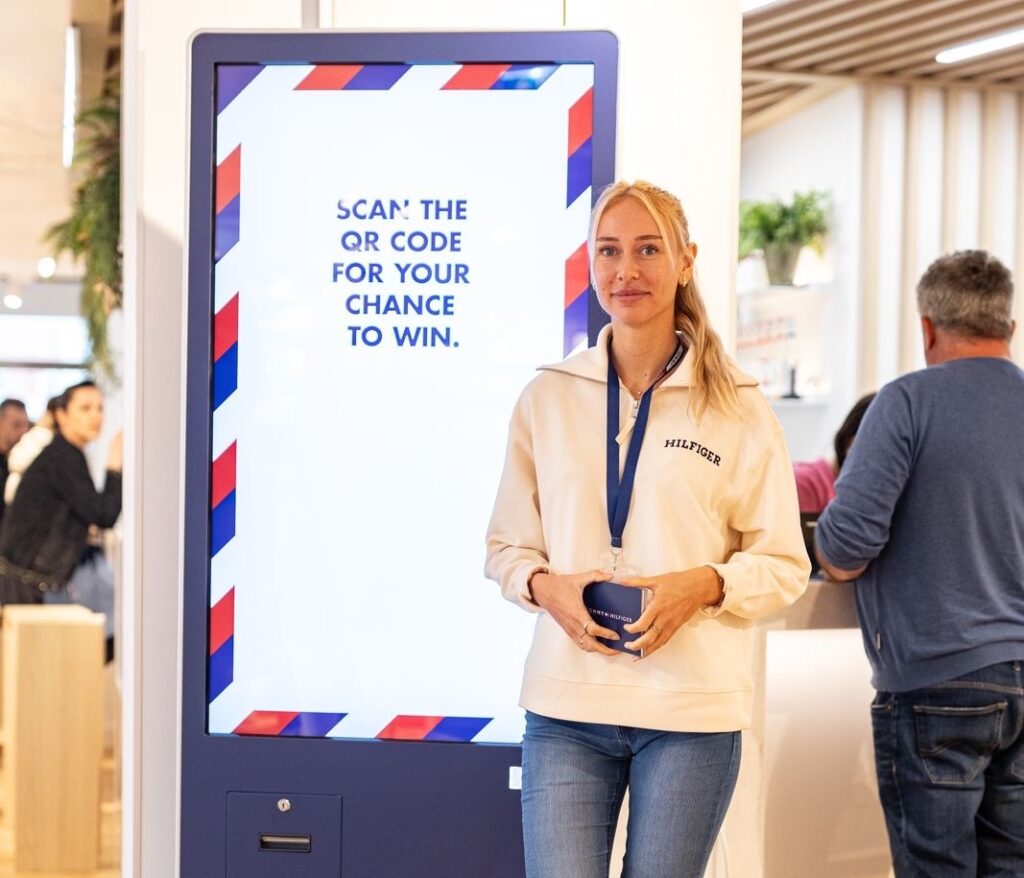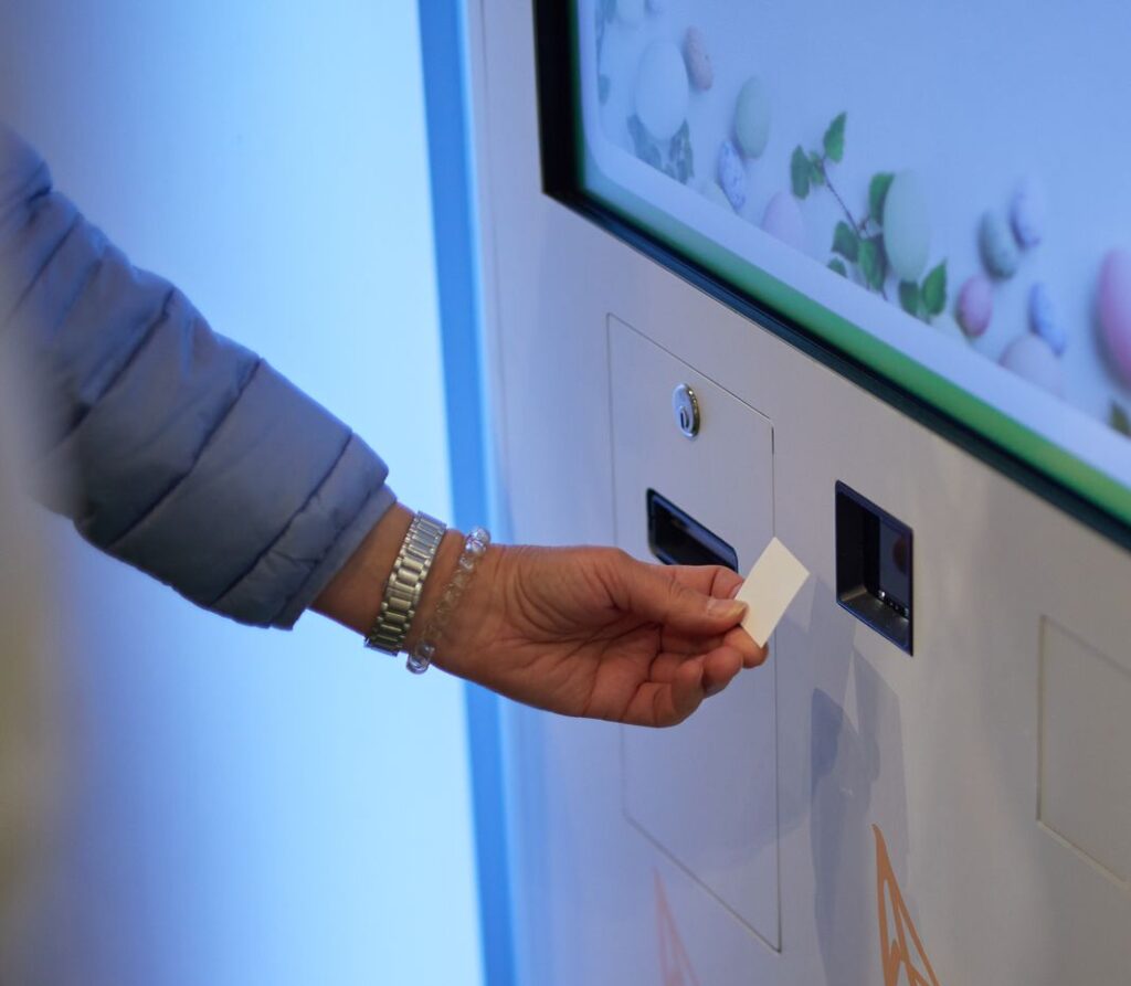 Teilnehmer:in lässt die Gewinnkarte an der Scan and Win® Station abscannen und aktiviert so das Gewinnspiel.