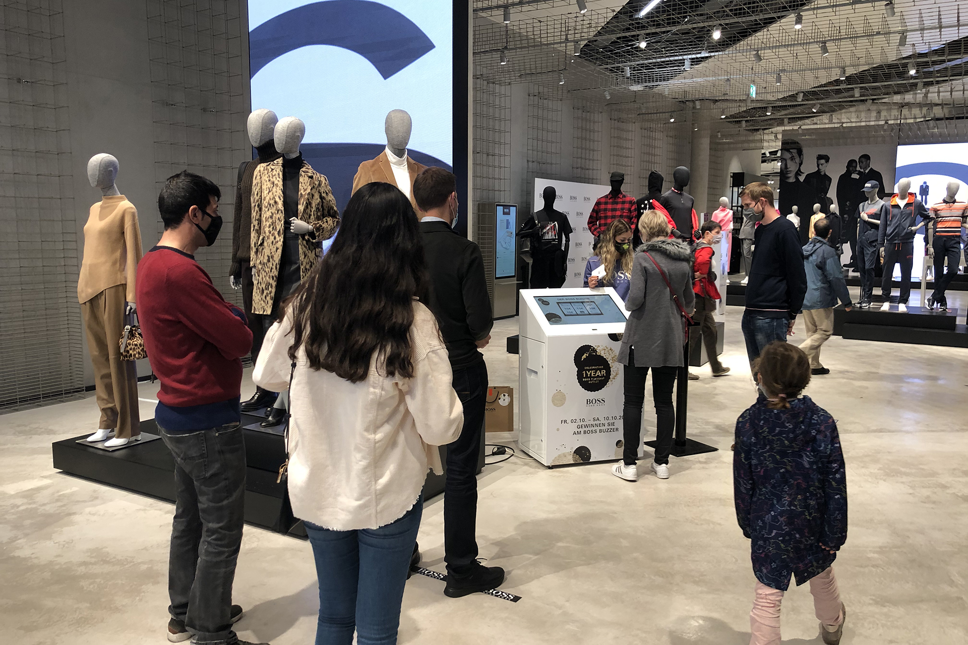 Winning Wheels®, Lucky Locker® oder Fotoaktion: aktionspotenzial unterstütze das BOSS Outlet gleich mit drei Modulen und motiviert unzählige Kund:innen zum Mitmachen. Die Geräte wurden gemeinsam mit der Agentur DECODER speziell für den Einsatz unter Pandemiebedingungen weiterentwickelt. Dabei lag der Fokus insbesondere auf der kontaktlosen Nutzung.