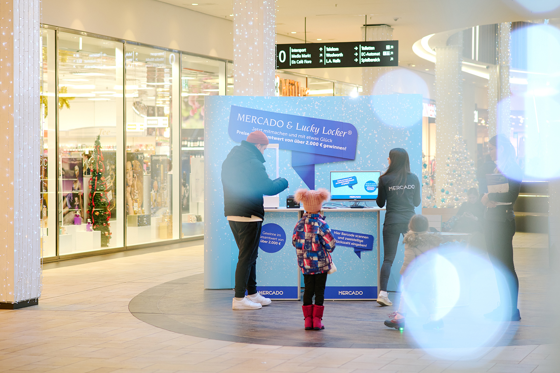 Lucky Locker® überzeugte dabei durch eine einfache Spielmechanik. Über einen Posteinwurf wurden im Vorfeld QR-Codes versendet und im Center lagen Teilnehmerkarten aus, mit denen konnten die Kund:innen das Modul am Touchpoint aktivieren.