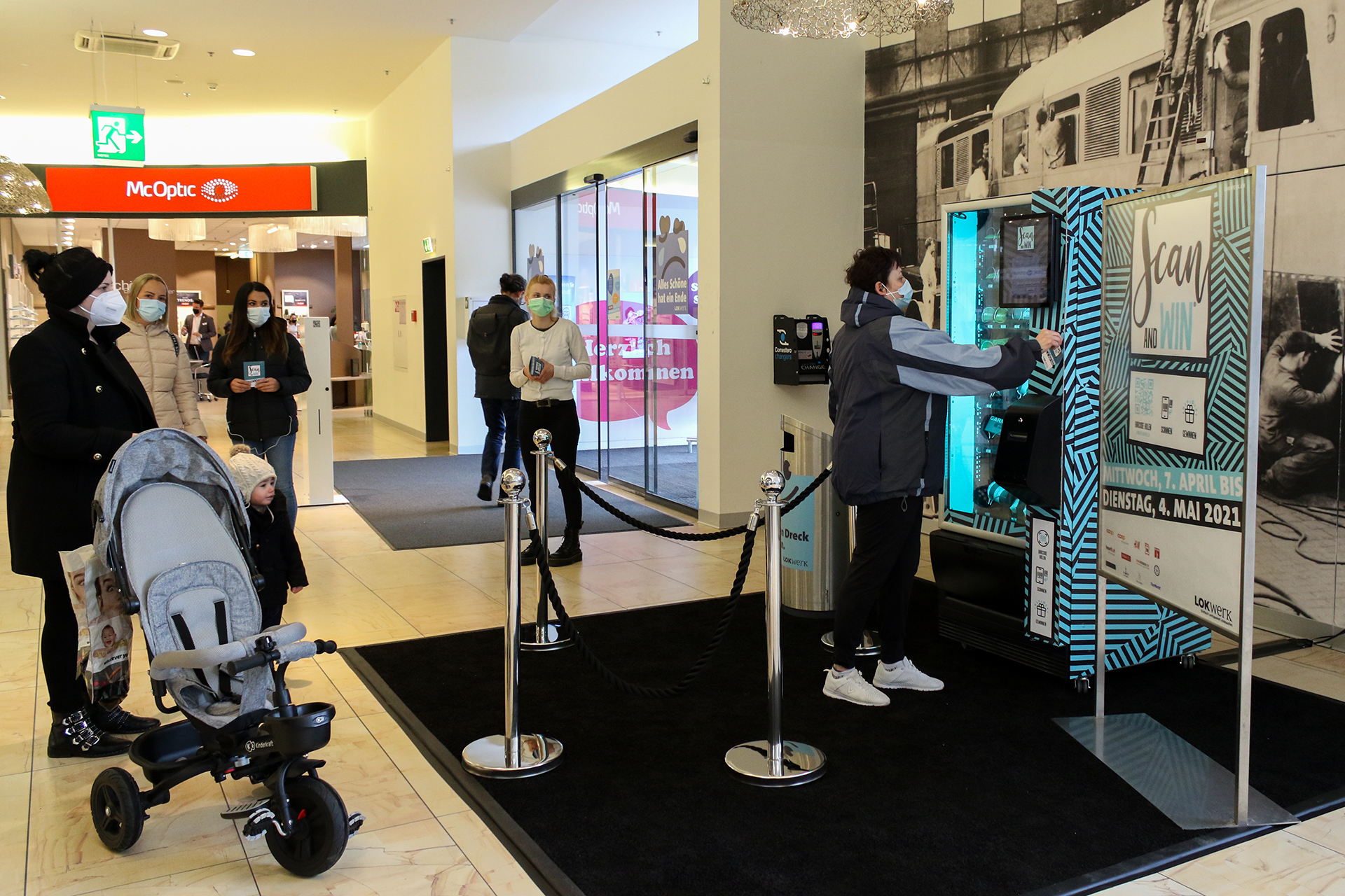 Dazu platzierte aktionspotenzial eine Social Vending Machine® im Eingangsbereich des Einkaufszentrums. In dieser wurden hochwertige Sofortgewinne, wie beispielsweise Centergutscheine im Wert von CFH500, exklusive Lokwerk Gewinne oder Smartwatches präsentiert.